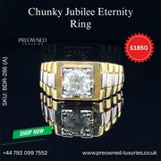 Make a lasting impression with this Chunky Jubilee Diamond Ring from Preowned Luxuries — a striking piece that blends bold design with brilliant sparkle. Perfect for special occasions or as a standout everyday accessory, this ring brings confidence and style to every moment. Professionally authenticated and offered at exceptional pre-owned value.